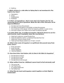 Read fault in our stars test questions Doc Gutenberg